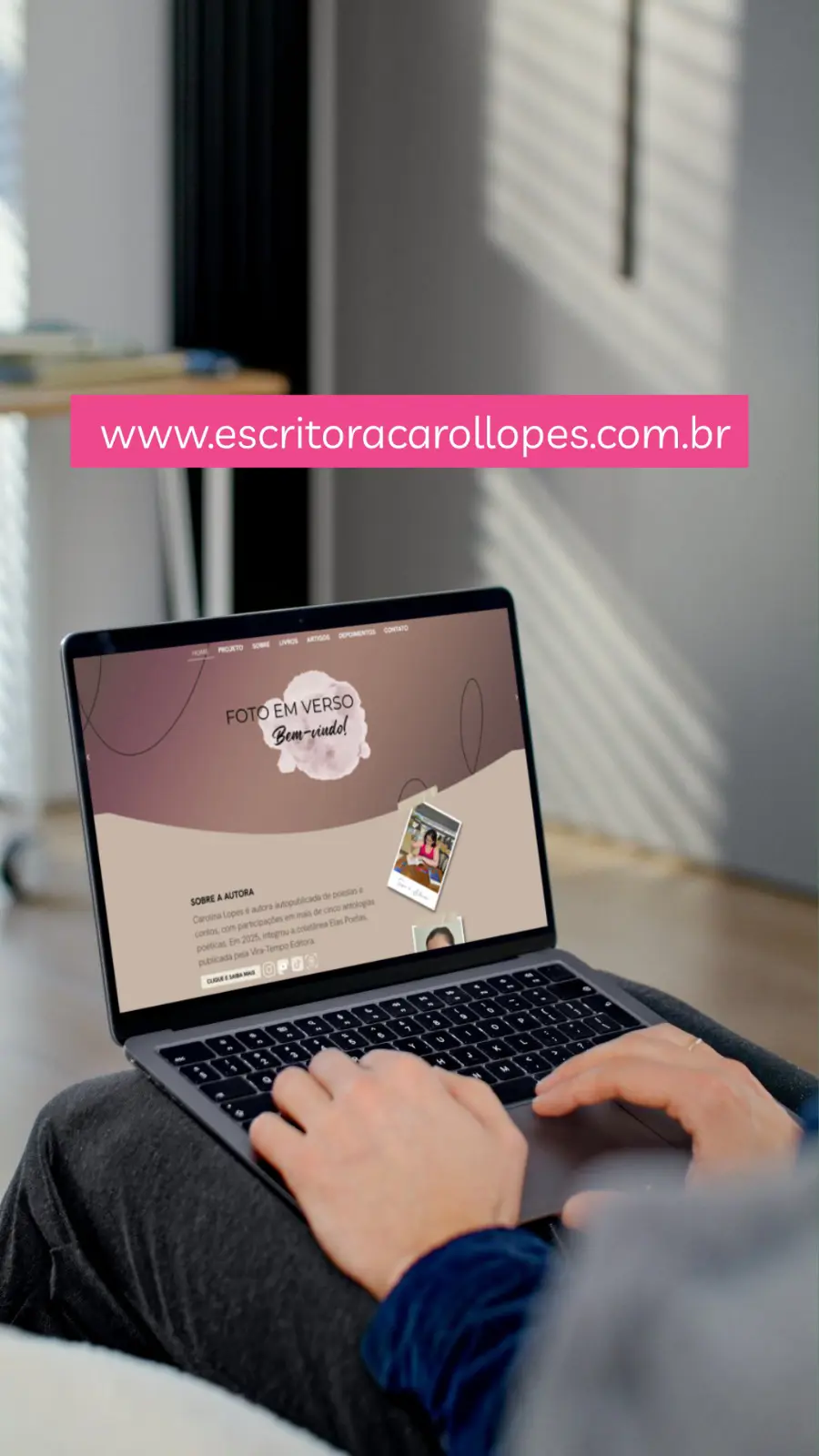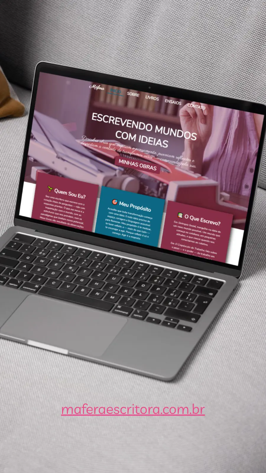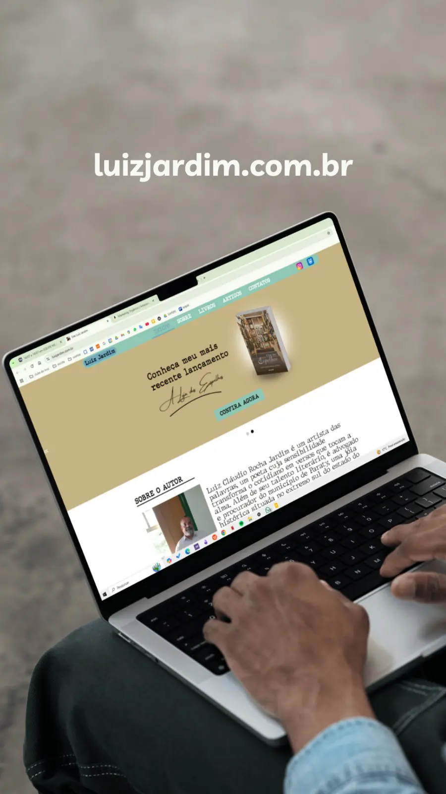 Desenvolvimento de páginas profissionais que ampliam o portfólio do autor, apresentando suas obras de forma impactante e fortalecendo sua presença digital.